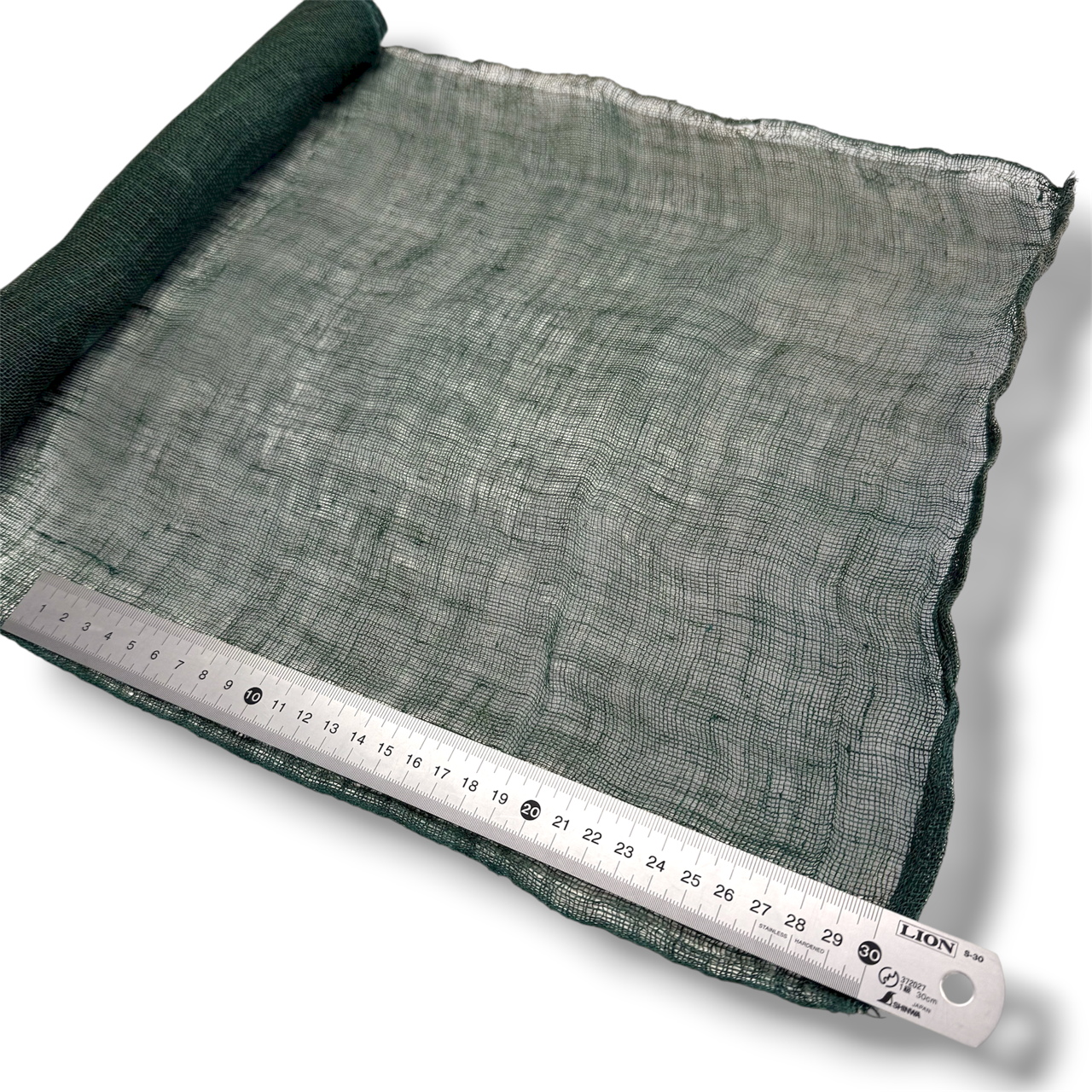 【切り売り】漆芸下地用 麻蚊帳生地 緑 30cm幅×50cm / Lacquerware Base Fabric – Green Linen Netting – 30cm Width / 50cm Unit